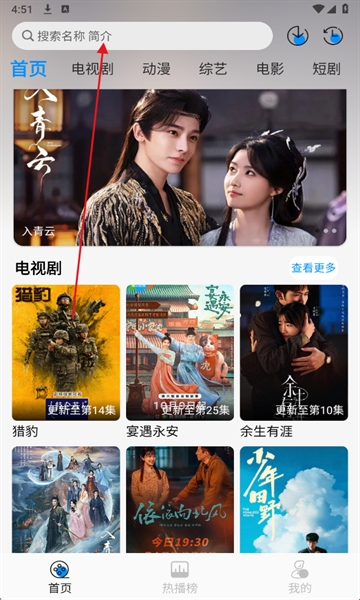 2、进入搜索页面,输入自己想要观看的影视剧