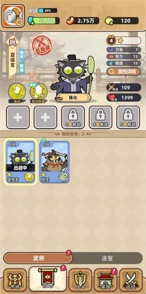 5、在主界面点击营地按钮可以强化你的角色,也可以选择上阵的武将。