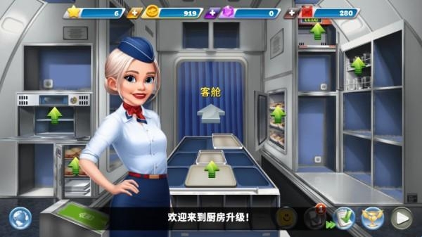5、点击右侧箭头可前往机舱或是回到飞机厨房,在机舱中将顾客所需食物给到顾客;