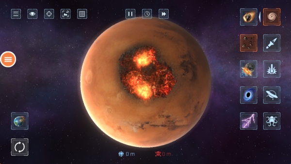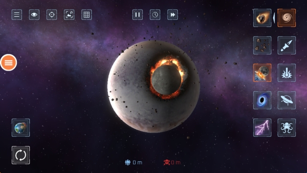 宇宙毁灭模拟器是一款非常有趣的休闲解压游戏,游戏中为玩家提供了丰富多样的武器选择,如反物质炸弹、量子共振器等科幻设定装备,每种武器都对星体结构造成差异化损伤,将会给玩家带来不同的视觉体验,游戏里采用了十分真实高清的3D画面,支持玩家广角镜头俯瞰全景爆破,为玩家带来身临其境的震撼视觉体验,非常解压。
