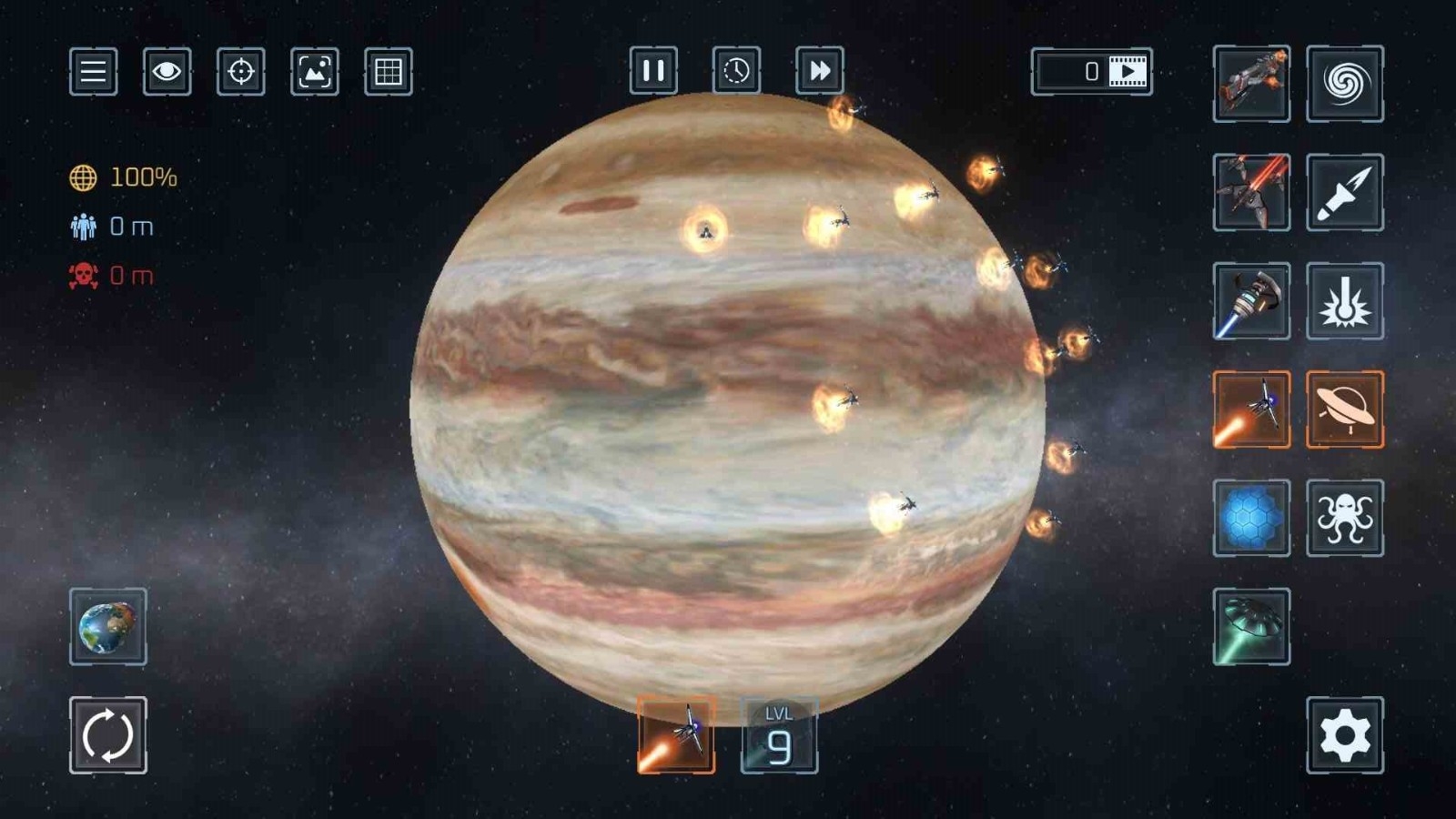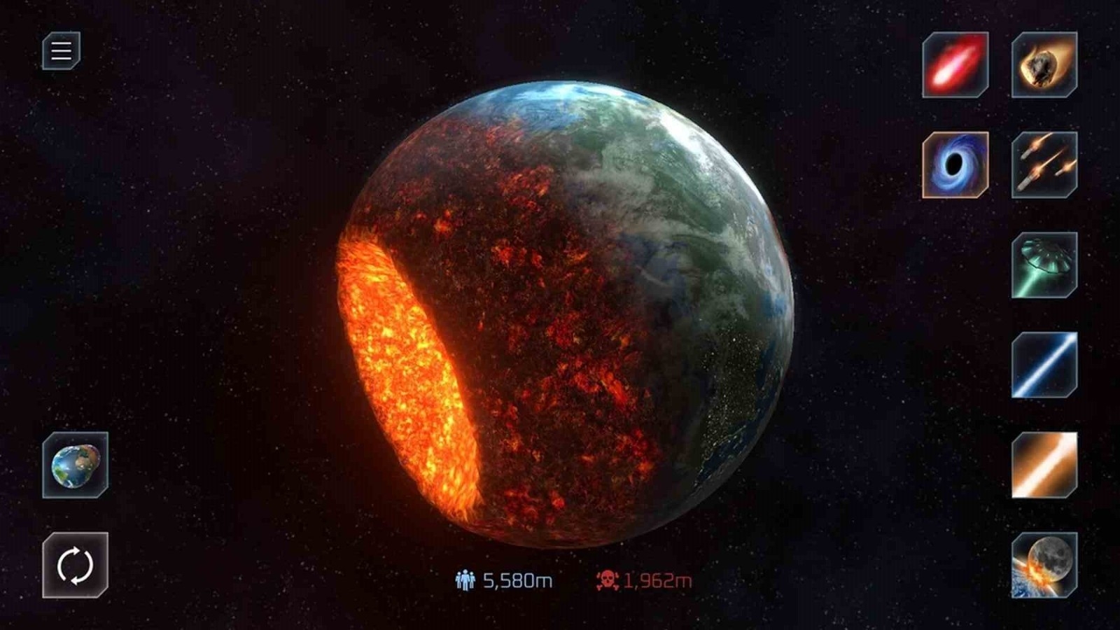 2、点击画面右侧的武器,选择好武器后再次点击星球即可进行轰炸。