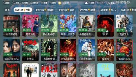 3、点击顶部的影视分类,包括臻彩4K电视剧、臻彩4K电影、臻彩4K综艺、臻彩4K动漫等