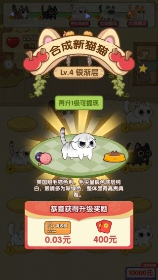 3、通过合成相同品种的猫咪,可以获得更高级别的猫咪,进而获取更多的收益和红包奖励。