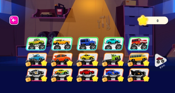 1、在开始正式挑战前,您可以从车库中选择不同性能的改装大脚车参与比赛。