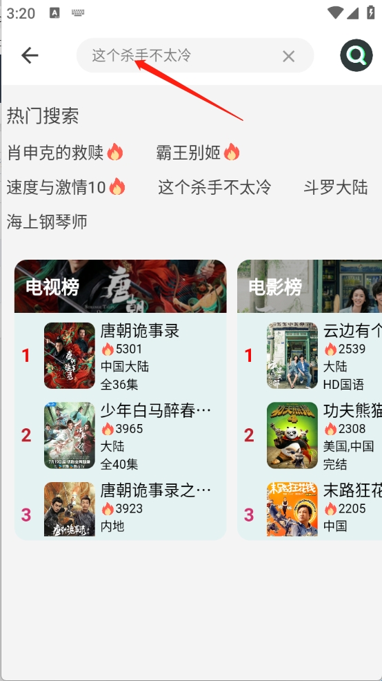 4、通过搜索关键词查找喜欢的影视资源。
