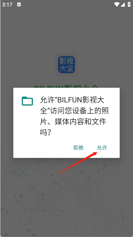 1、首先下载BILFUN影视大全app,开启相关的权限。