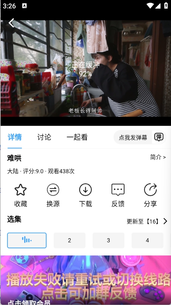 3、根据网络波动实时调整播放画质,网络卡顿瞬间降低清晰度保障流畅播放,网络恢复后自动回升画质,平衡流畅度与视觉体验。