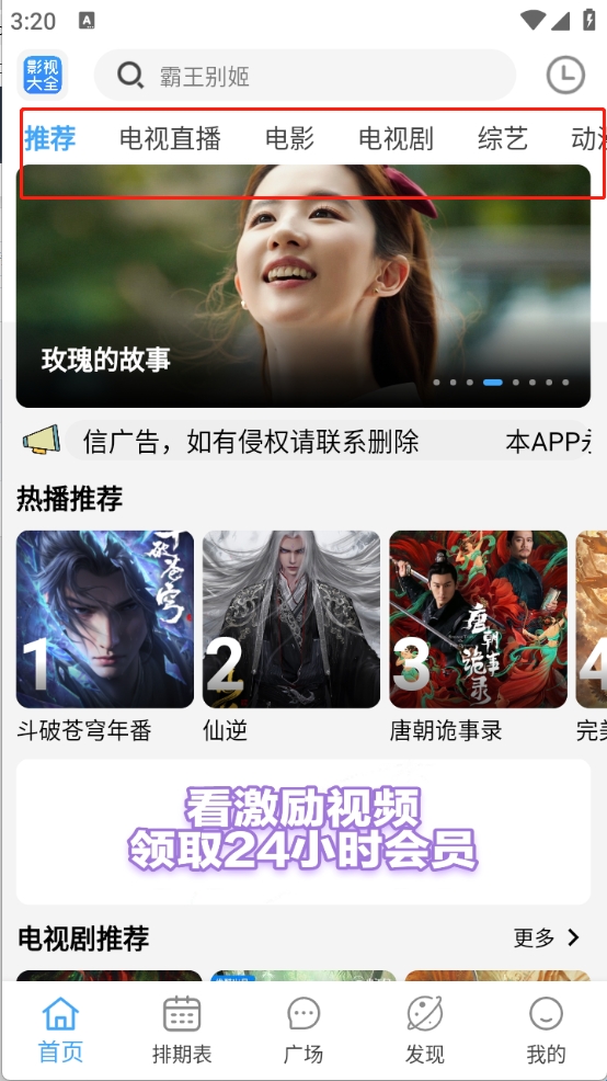 2、首页顶部栏中有很多的影视资源,包含了电视剧、电影以及综艺等。