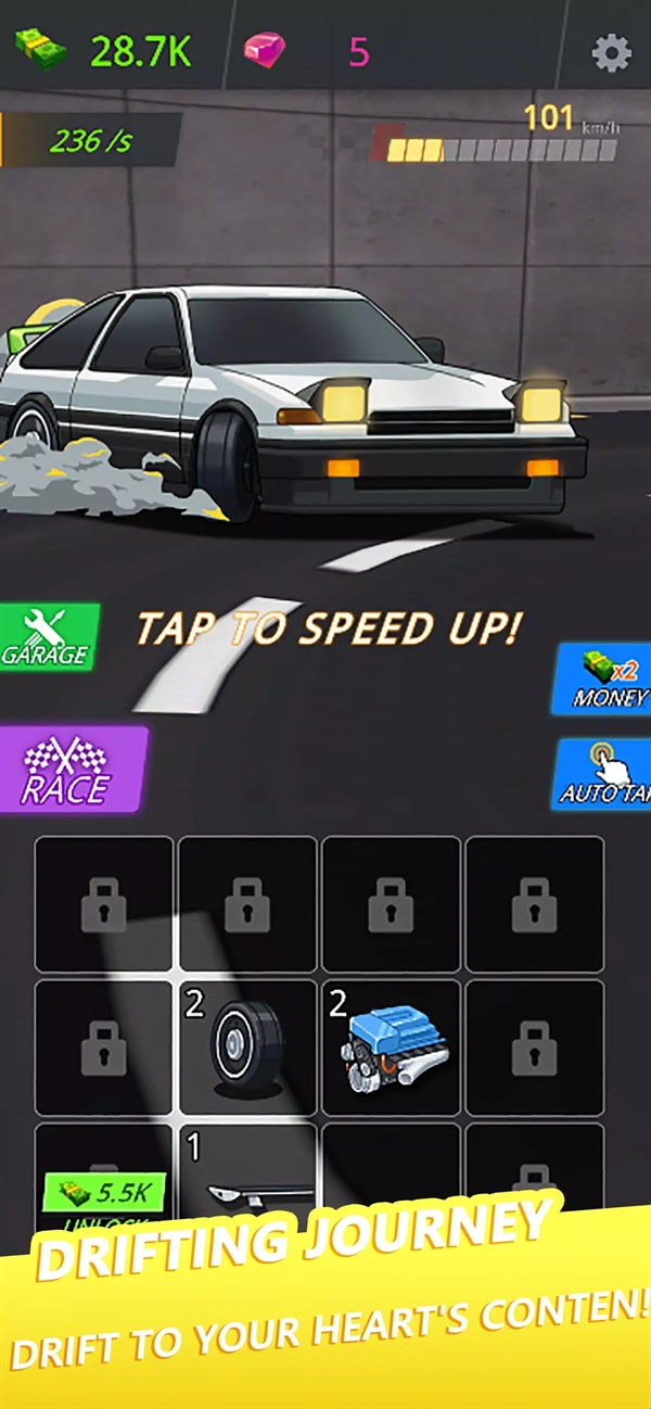 放置漂移是一款有趣的赛车竞速游戏,游戏中有着各式各样的赛车选择供玩家自由选择,每辆赛车都有着不同的属性和技能,玩家需要根据赛道的特点选择合适的赛车,才能发挥赛车最大的性能,游戏里玩家可以通过完成任务、比赛和升级来获取金币和经验值,用于更好升级赛车的能力,让玩家能够做出多种高难漂移动作,增加玩家的游戏成就感。
