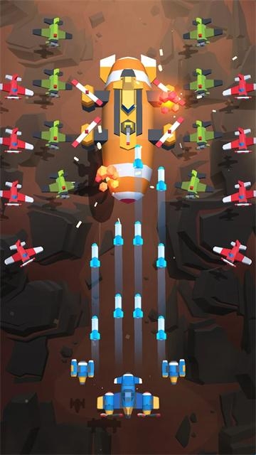 1、经典纵轴射击模式创新演绎,采用3D粒子特效构建弹幕矩阵,在保留街机复古感的同时提升视觉冲击力。