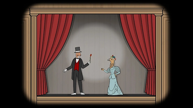 4、延续锈湖系列标志性的诡异氛围与超现实叙事,通过20个荒诞离奇的魔术表演段落,揭示隐藏在华丽演出背后的秘密。