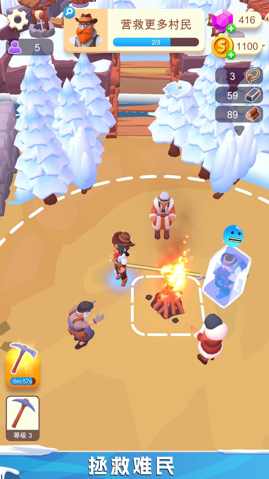 2、解冻被冰雪掩埋的幸存者,他们将成为你的帮手,协助采集资源、建造房屋。