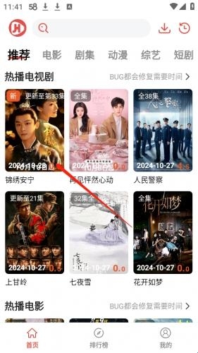 1、打开在本站下载的剧荒app,各位可以自由浏览或者搜索想看的影片,小编打开的是“锦绣安宁”。