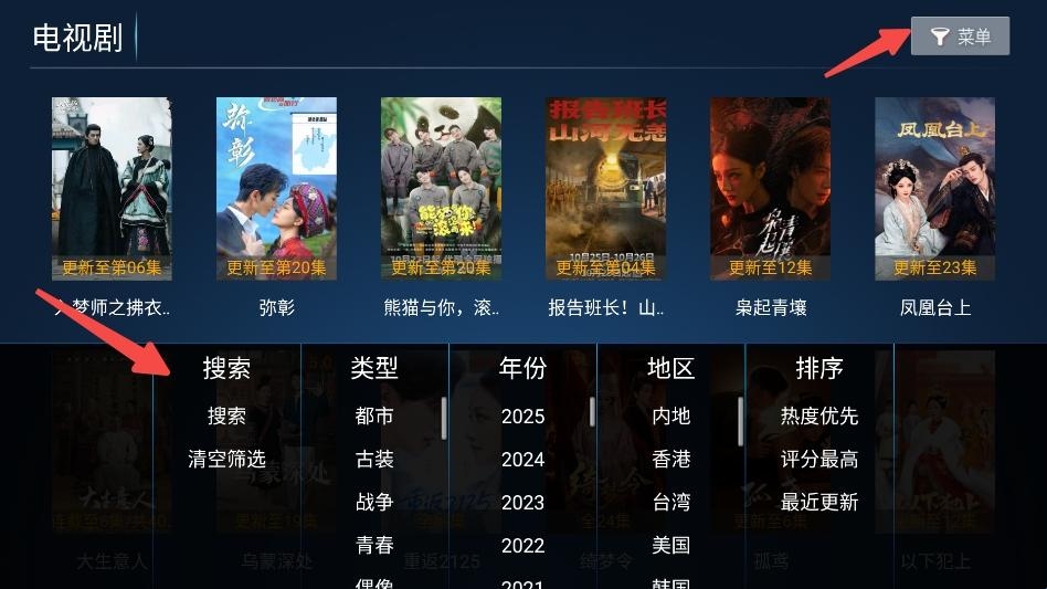2、进入对应分区后点击菜单也可以进行详细的分类。