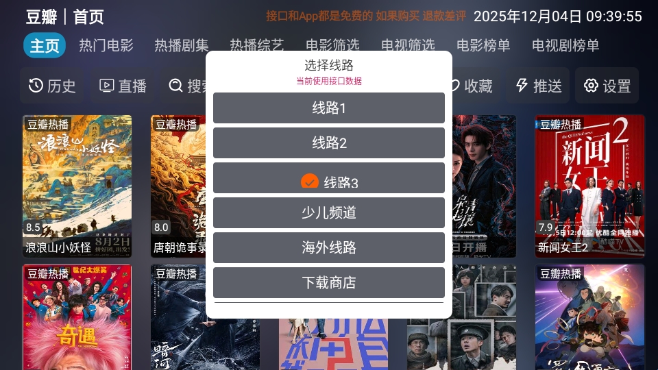 3、然后就可以手动自由切换当前的播放线路,这里以【线路三】为例。