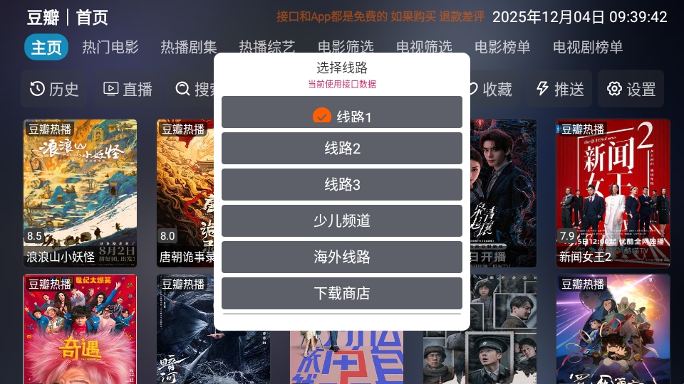 2、接着点击主页的【线路】,这个时候是“线路一”。