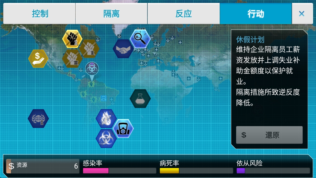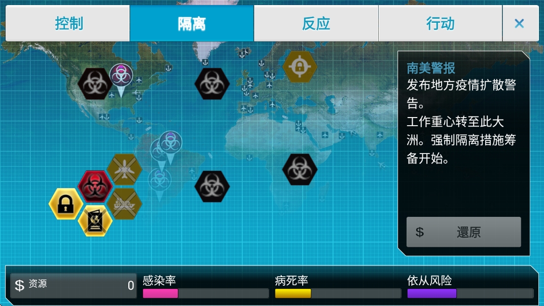 ---游戏分为控制/隔离/反应/行动等模块选择;