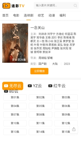 速影TV:免费为用户网罗全网海量正版影视资源的软件。采用极简的画面风格设计,搭配上直观清晰的观影功能,为用户提供便捷观影体验,无需开通会员、无任何付费门槛,全网高清影视资源保障播放流畅稳定,用户打开软件就能够享受到高质量的观影。