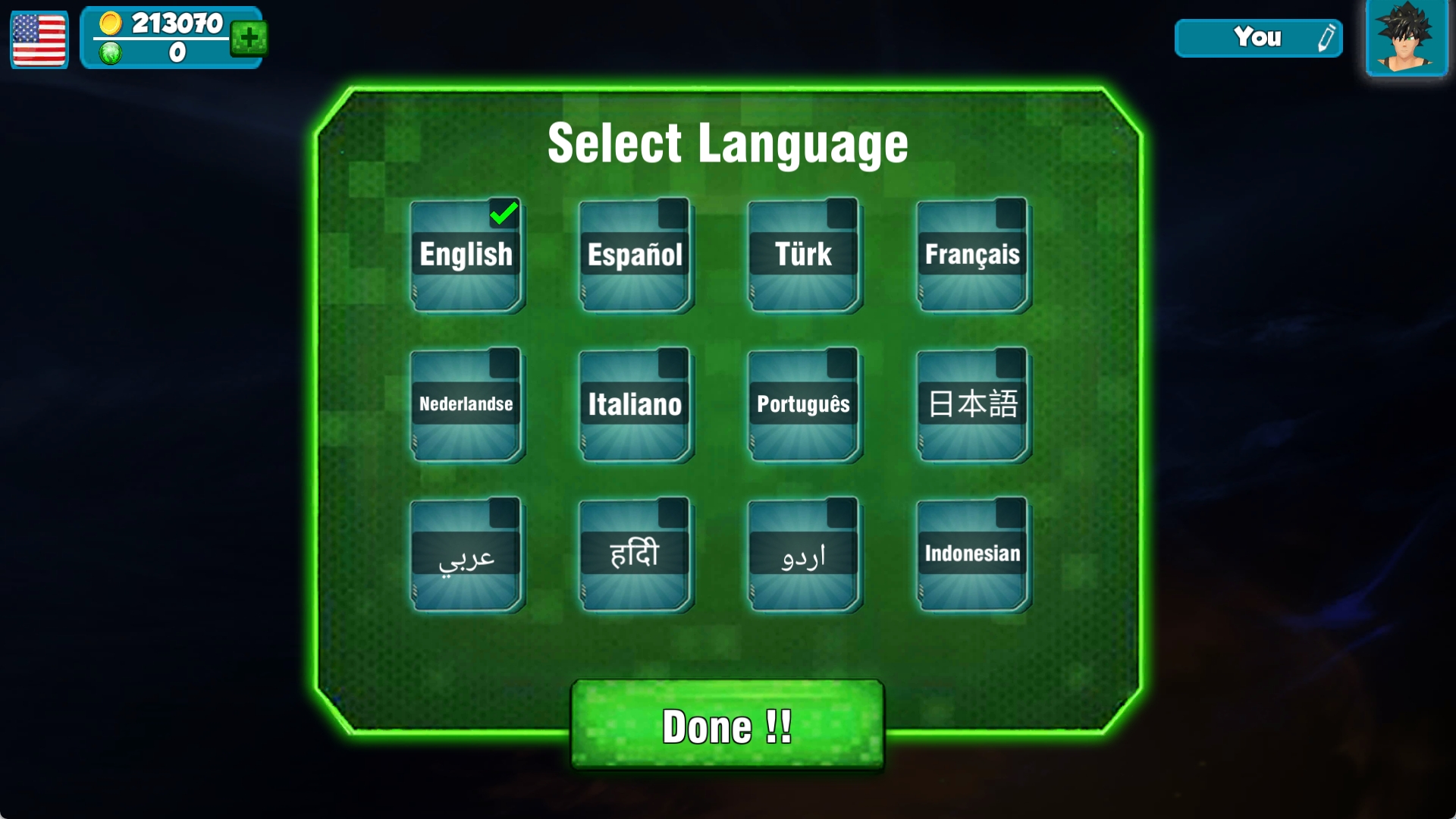 1、在本站下载好游戏打开,点击开始按钮,选着自己喜欢的语言种类。