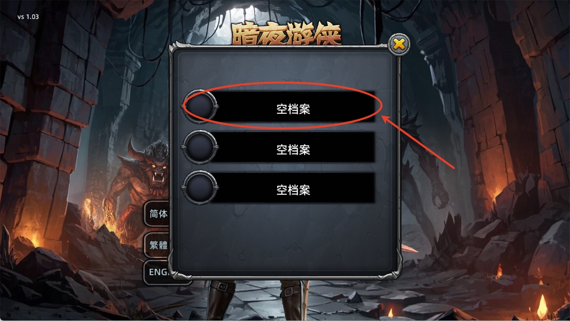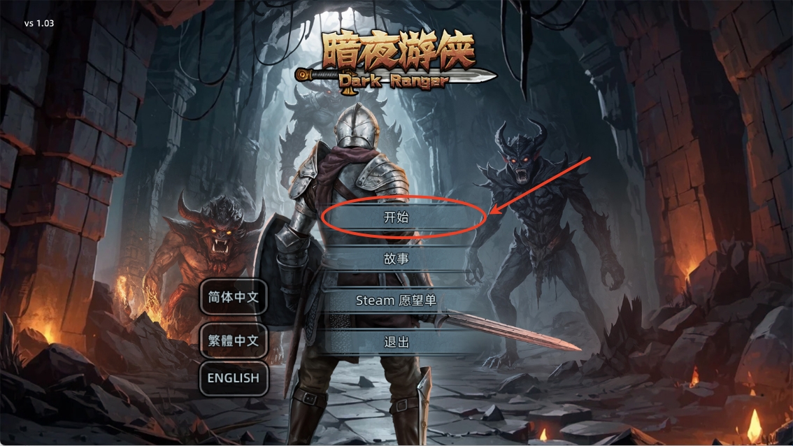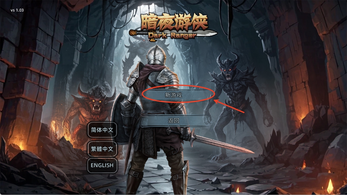 1、在本站下载好暗夜游侠后,进入主页面点击开始游戏,并创建存档。