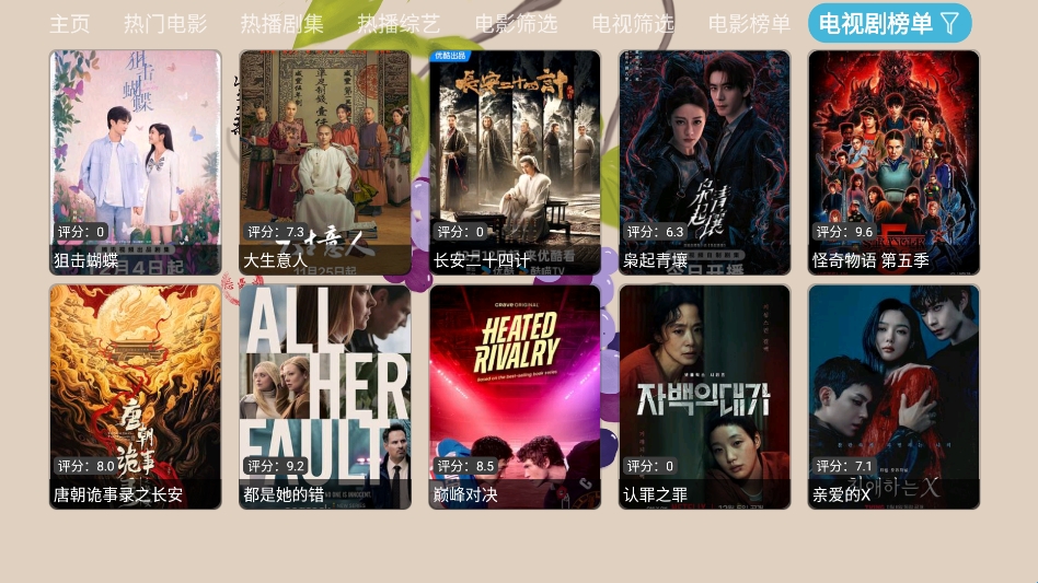 芸汐影视:将国内外影视资源全部收入囊中的神器。这款APP支持用户在手机上使用,也可以下载安装到电视上,不管是院线热映还是高分电视剧,又或者是热播综艺等,在这里全部都可以免费观看,所提供的影视资源都是超清无码的画质,追剧很轻松。