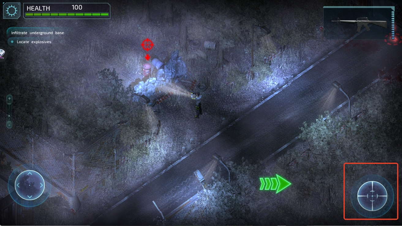 3、点击右下角的射击按键,瞄准油桶打爆它,将前方障碍物全部清除。