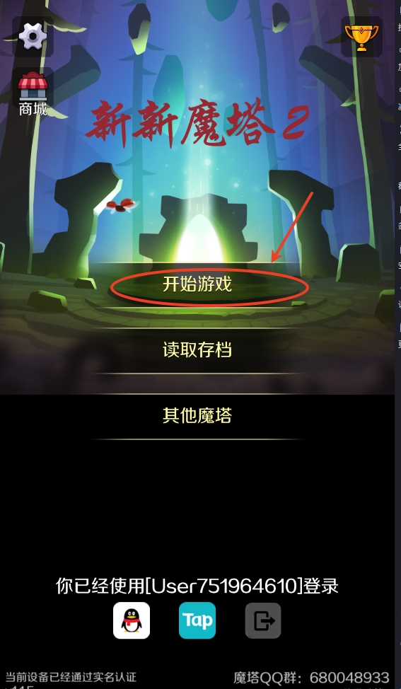 1、在本站下载好新新魔塔2,进入游戏主界面点击开始游戏。