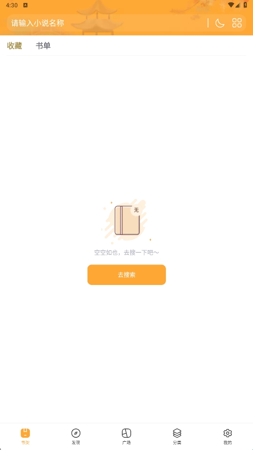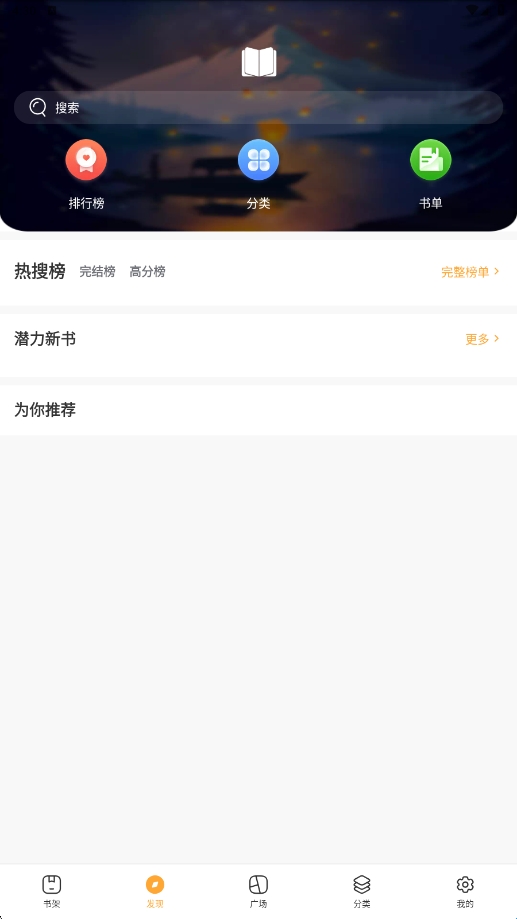 ---可以在五大板块发现功能中寻找自己想看的书籍。