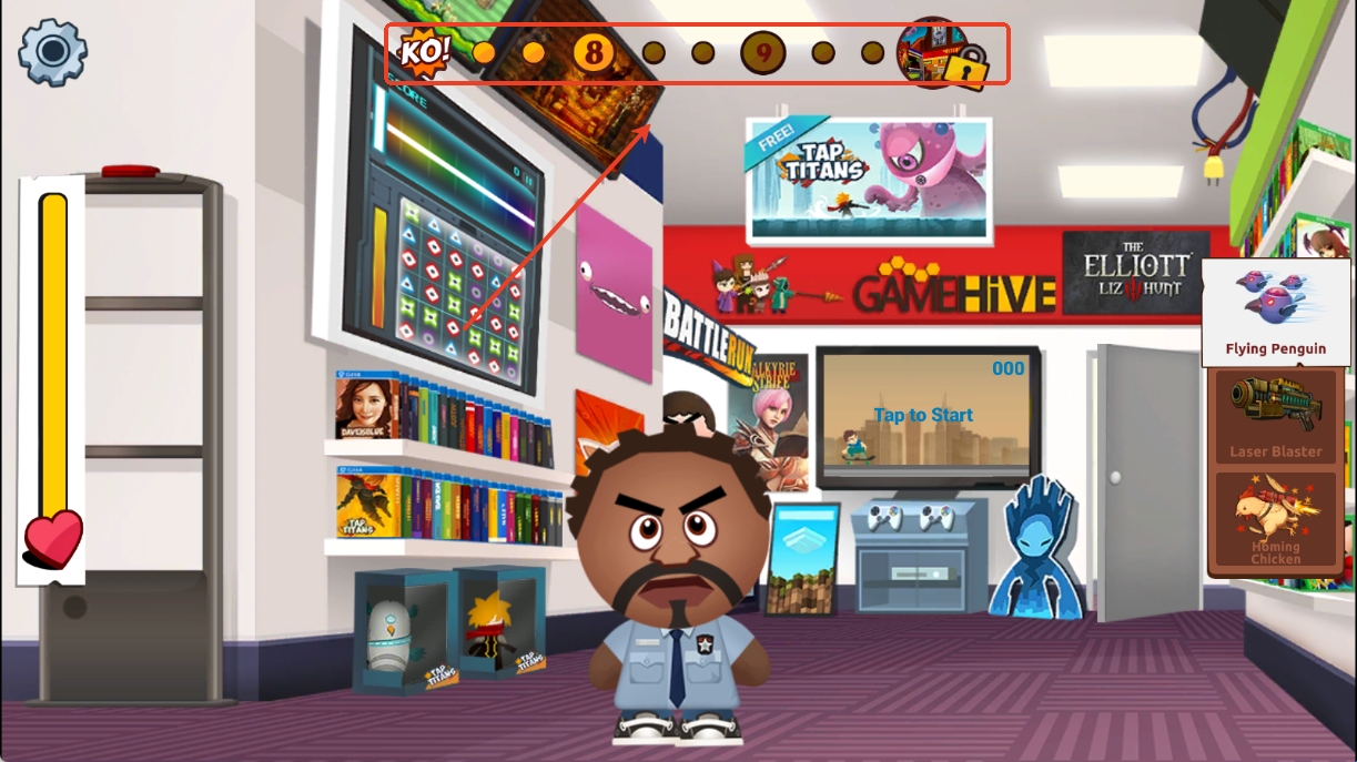 4、玩家需要将左边老板的血条清零即可通过关卡。