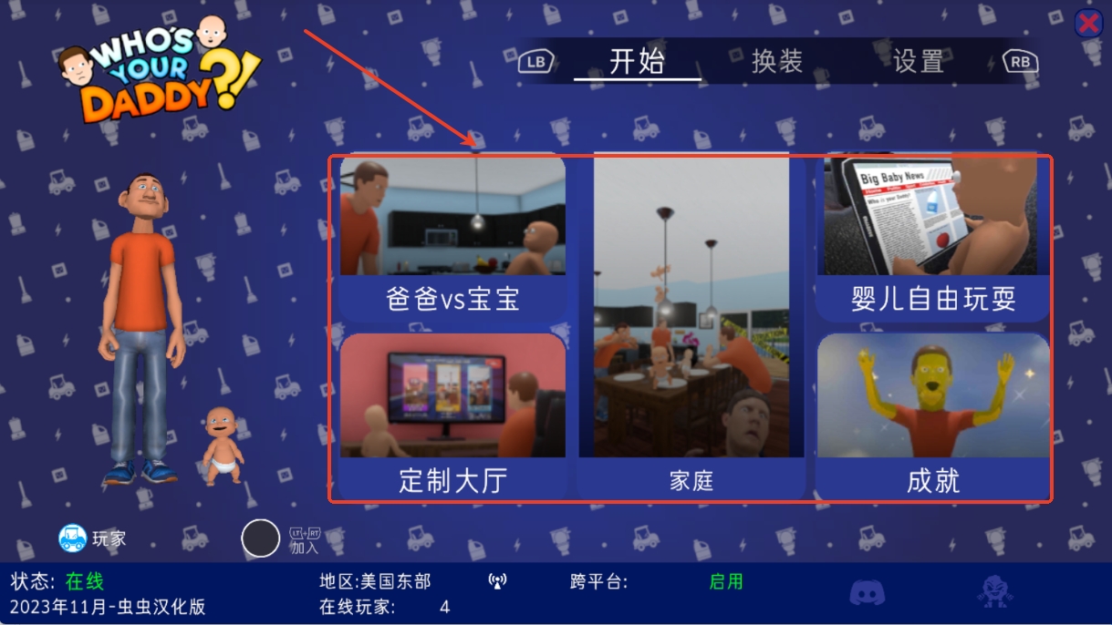谁是你爸爸是一款好玩有趣的角色扮演对战游戏,游戏中有着爸爸和宝宝两种供玩家选择,如果选择宝宝这需要进行各种捣蛋,并防止被爸爸抓住,如果扮演爸爸这需要阻止顽皮的儿子进行各种恶作剧,非常有意思,游戏内采用了精致的3D画风设计,搭配上多样化的场景,为玩家带来丰富的游戏体验。