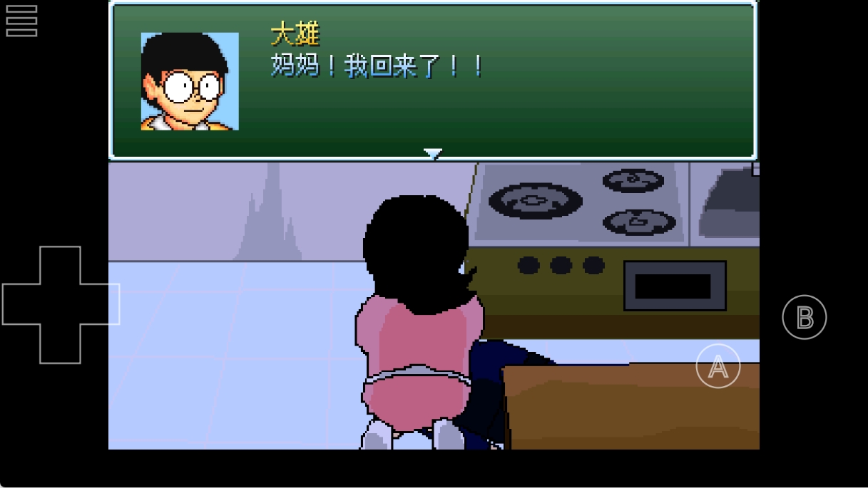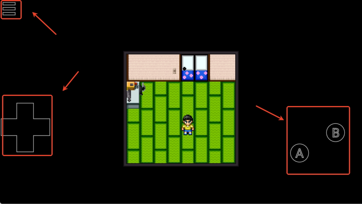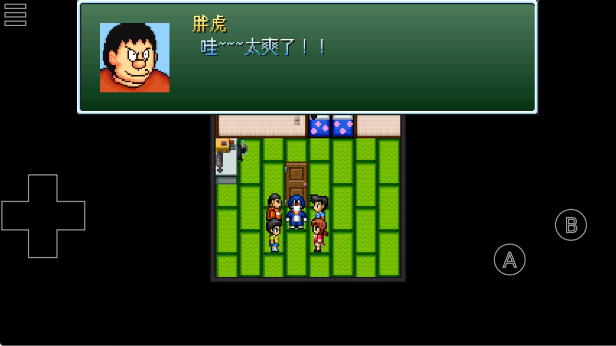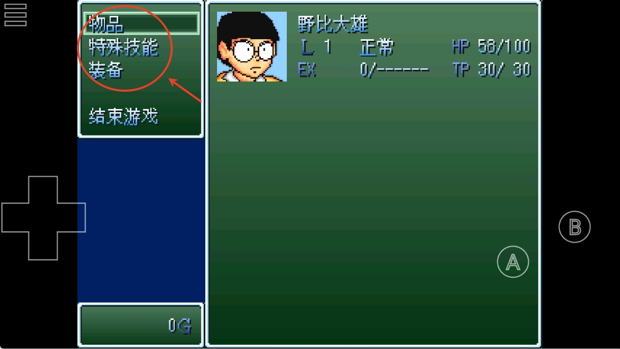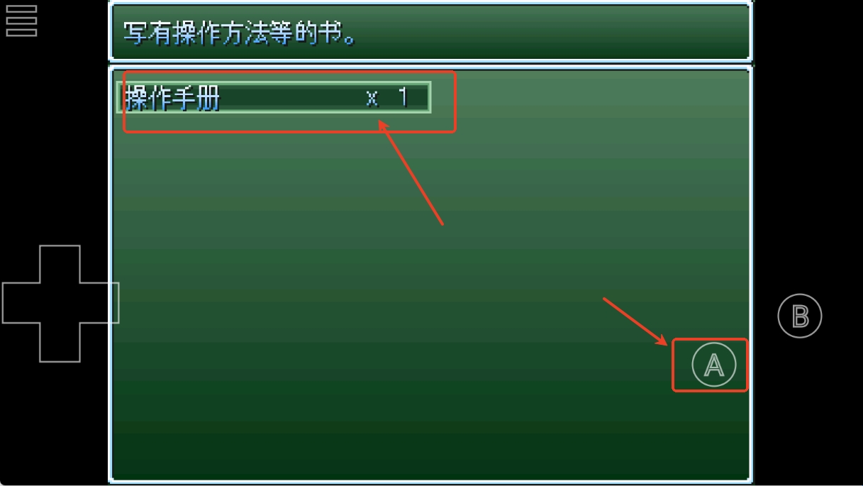 3、左上角是菜单键,左下角是方向控制键,右下角A是确认键和角色面板键、B是返回和互动键。