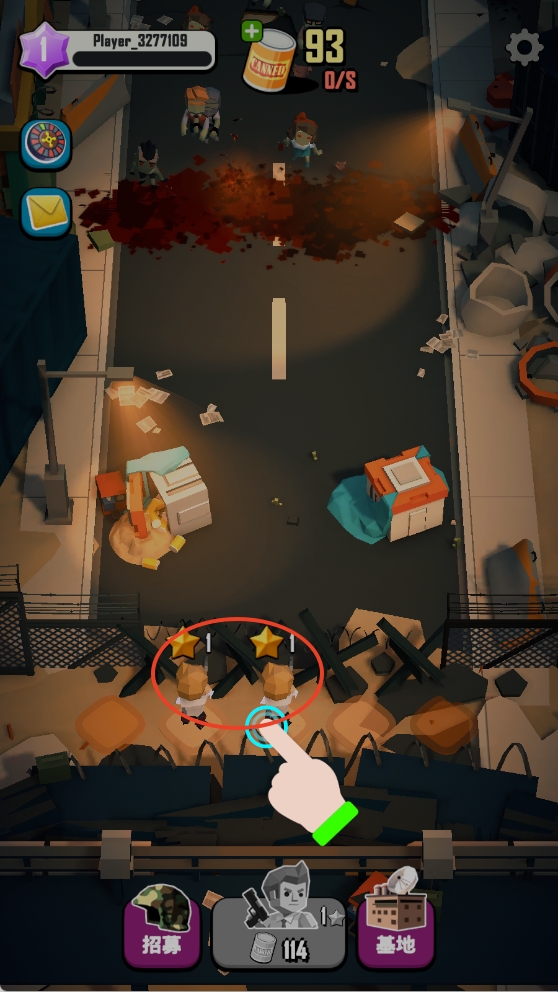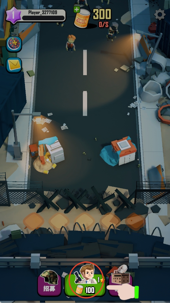2、进入游戏后根据指引点击下方按键,召唤人物抵御僵尸。