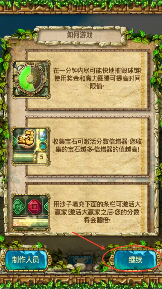 3、选择好后会出现玩法说明,当玩家看完点击继续进入到关卡选择中。