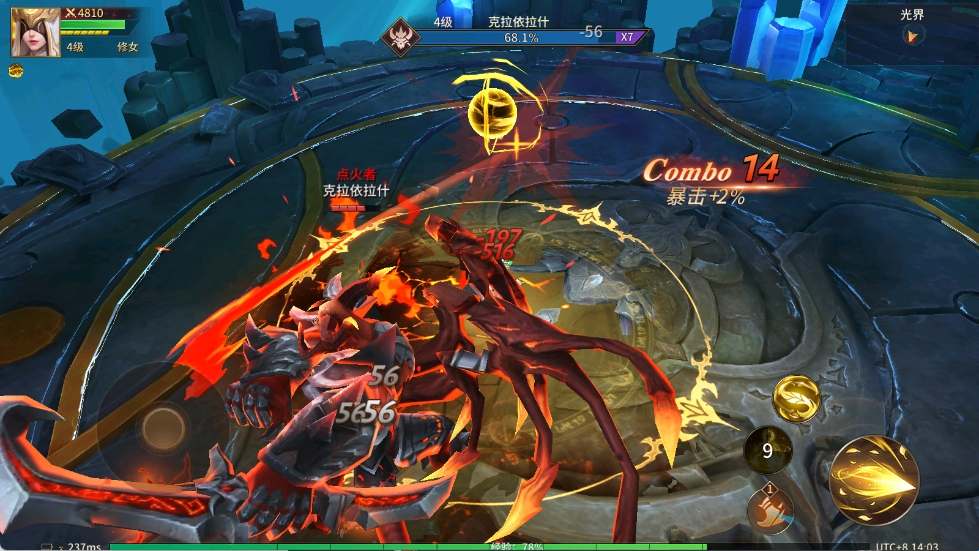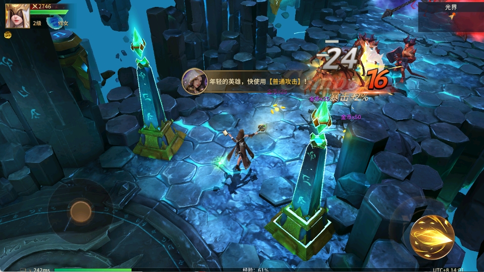 4、进入游戏后左下角是角色移动控制键,右下角是攻击键和技能键。