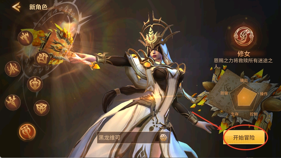 2、有着7种不同的类型的职业供玩家选择,选择好后点击开始冒险。