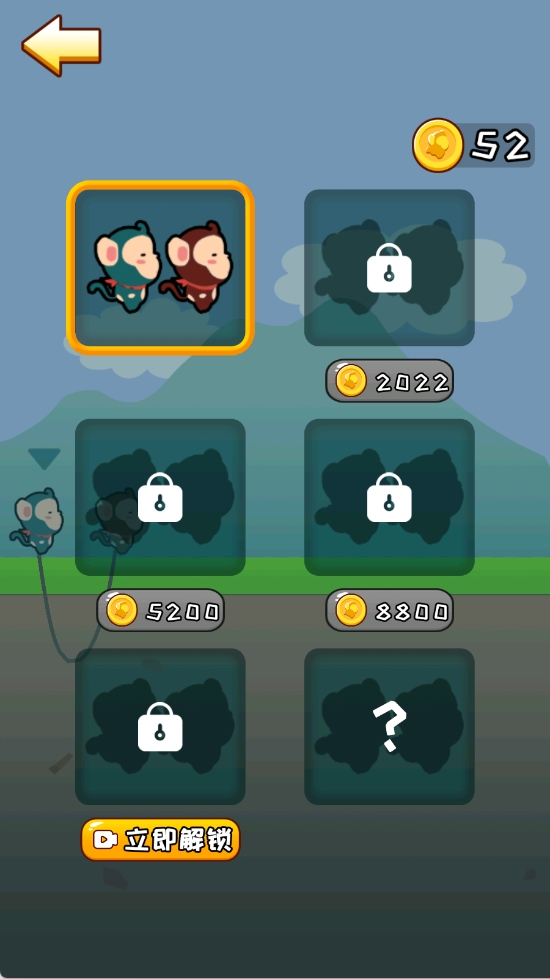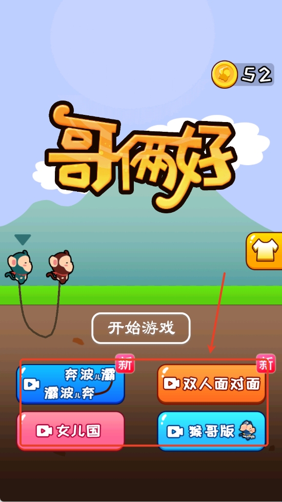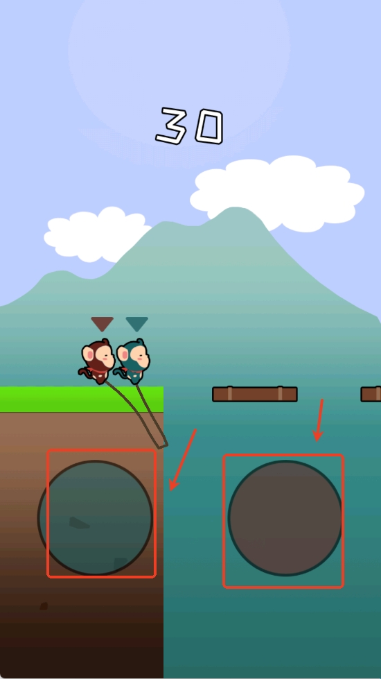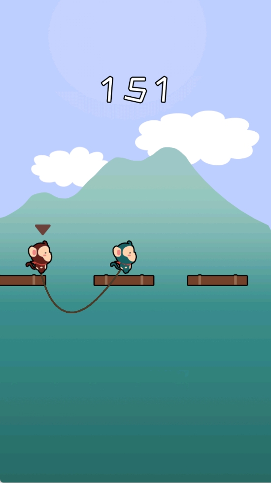 3、游戏内玩家需要点击屏幕控制两只小猴子进行跳跃,按住的时间越长小猴子就跳得越远。