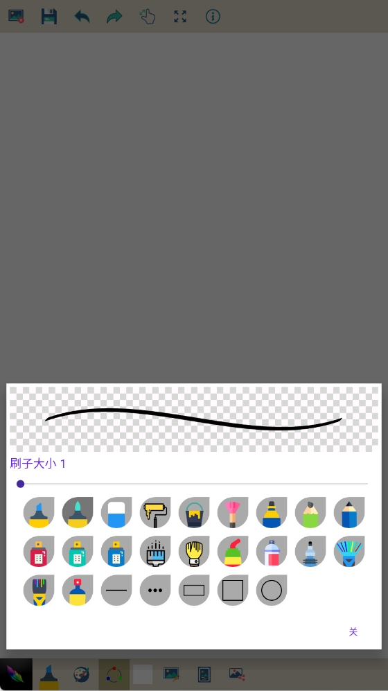 2、在画布下方拥有各种设置,用户可以更改画笔样式和大小,还可以自由更改画布背景颜色等等;