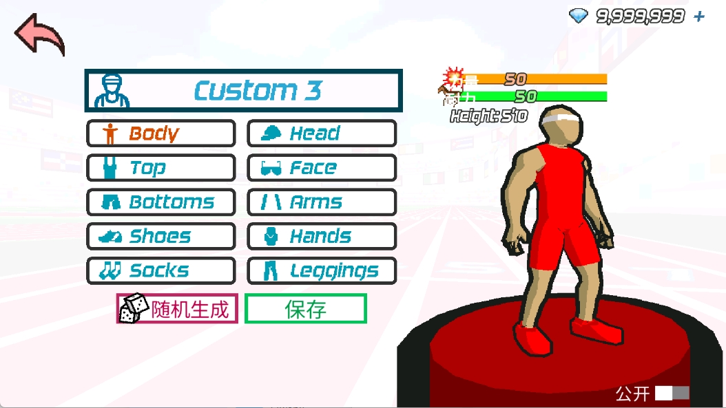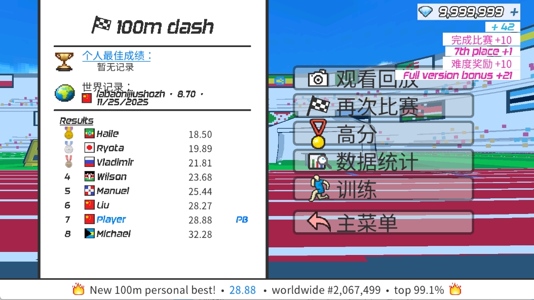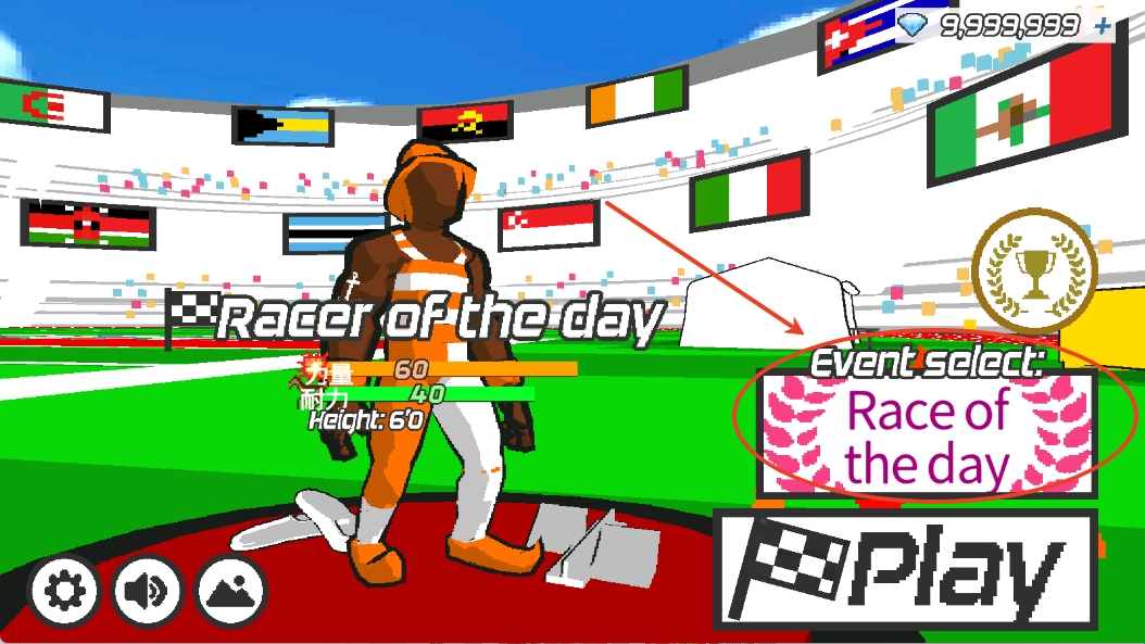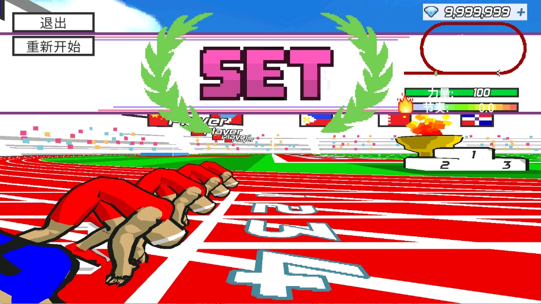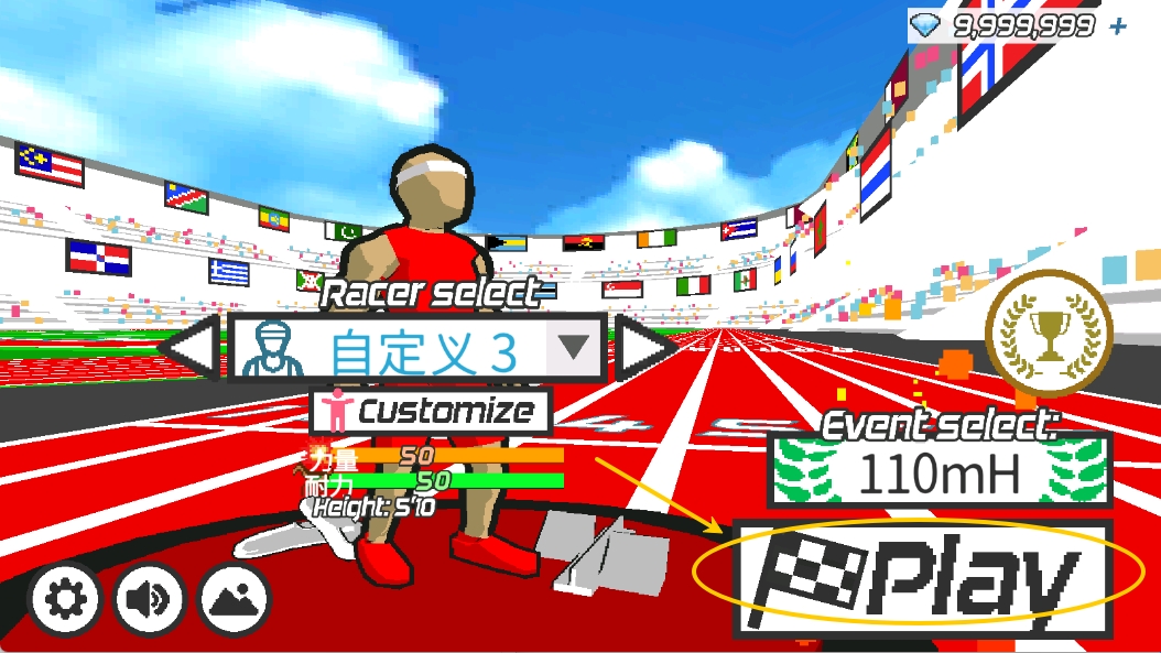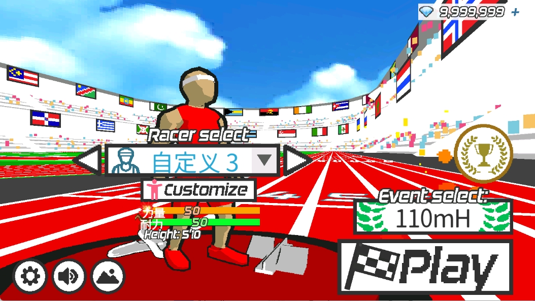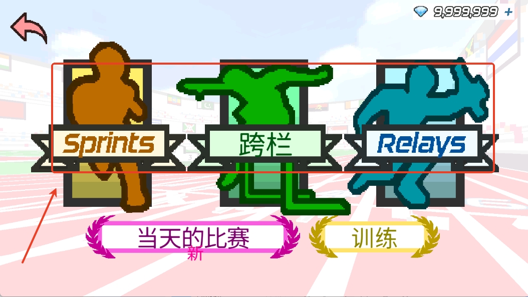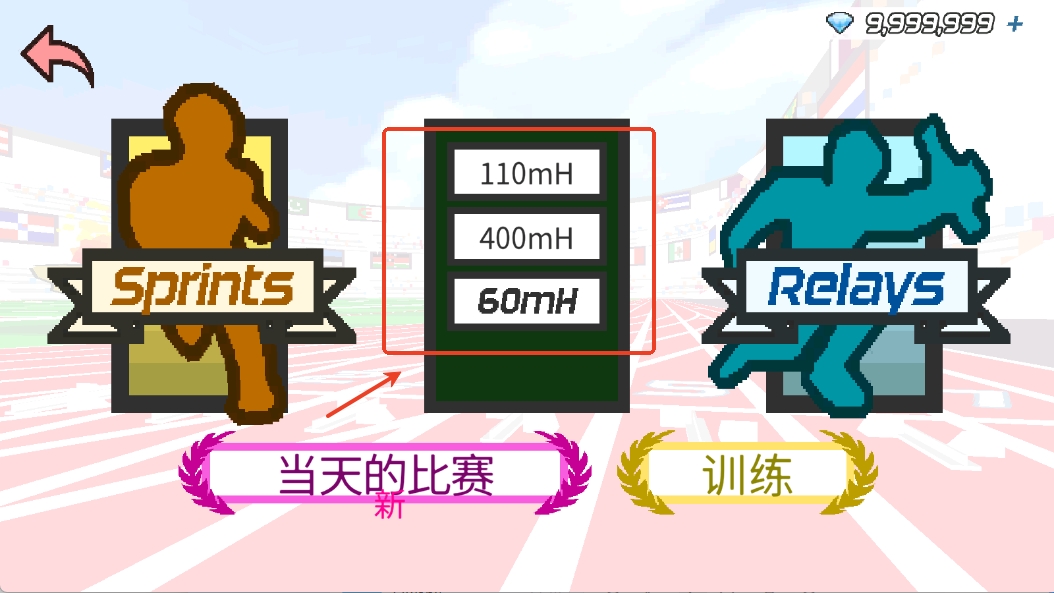 2、进入后有着3种运动比赛供玩家自由选择,每种运动比赛中都有着不同的项目,如跑步是100米、200米、400米等。