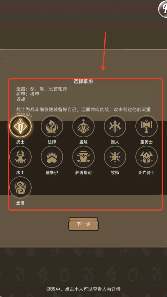 2、然后从11种不同的职业中选择一个你最喜欢的,点击下一步。