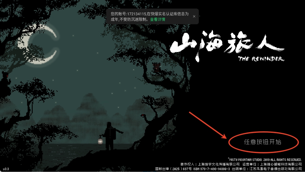 1、在本站下载好山海旅人游戏并打开,在主页面点击屏幕任意位置、再点击新游戏。
