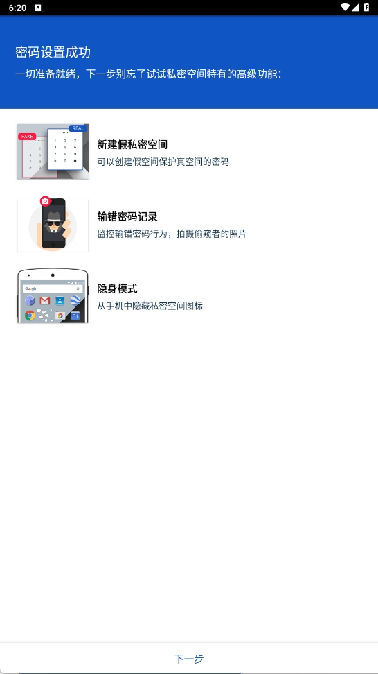 私密空间app是一款非常实用的保密软件,软件内可以帮助用户避免熟人索要密码时不得不给的境遇,为私密空间设置虚假密码,通过虚假密码进入不会看到实际存储的重要隐私信息,还能够将试图进入到私密空间的偷窥者拍照记录下来,并显示其尝试的错误密码和位置所在地,看谁曾动过你的手机,是一款非常不错的保密软件,欢迎各大用户前来下载体验。