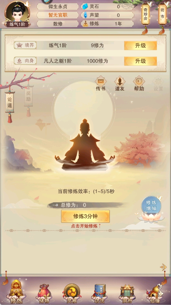 2、玩家进行实力提升的主要方法便是进行修为的修炼,通过修炼来提升境界、塑造肉身。