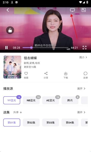 3、点击进入,点右上方小电视,若遇到播放源不支持投屏,可以在下方切换播放源