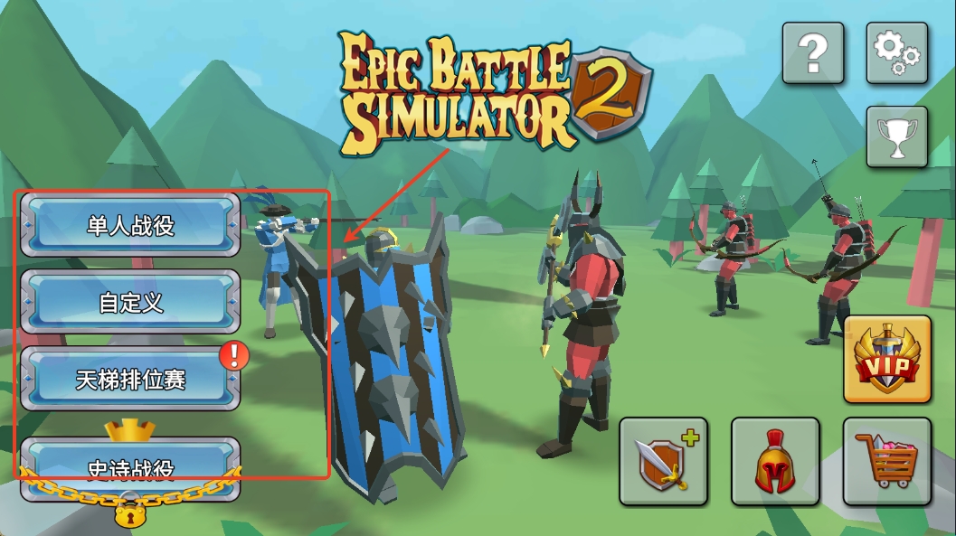 1、在本站下载好史诗战争模拟器2后,进入主页面有着单人战役、自定义、天梯排位赛、史诗战役供玩家自由挑选。
