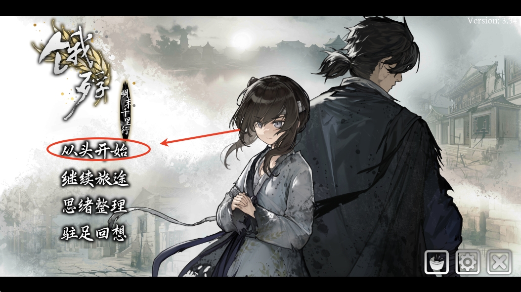 1、在本站下载饿殍明末千里行后,进入主页面选择从头开始。