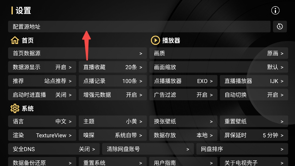 2、在设置里面点击配置源地址。