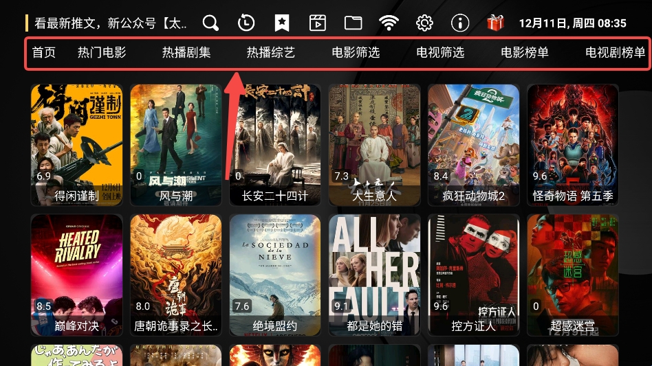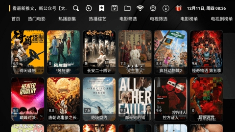 专为电视端设计的操作界面,图标清晰、布局合理,遥控器操控流畅无延迟。