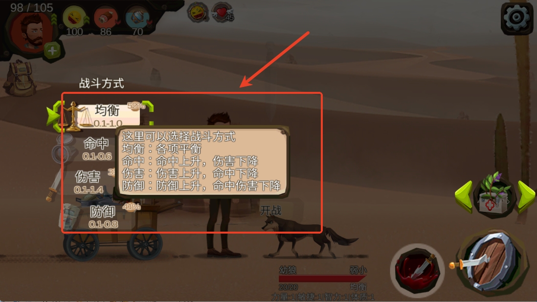7、遇到危险开战时,玩家可以选择4中不同的战斗方式,每种方式都有着各自的优点,玩家可以根据自己的喜好进行选择。