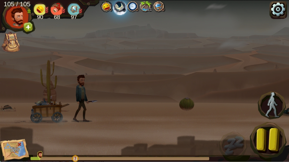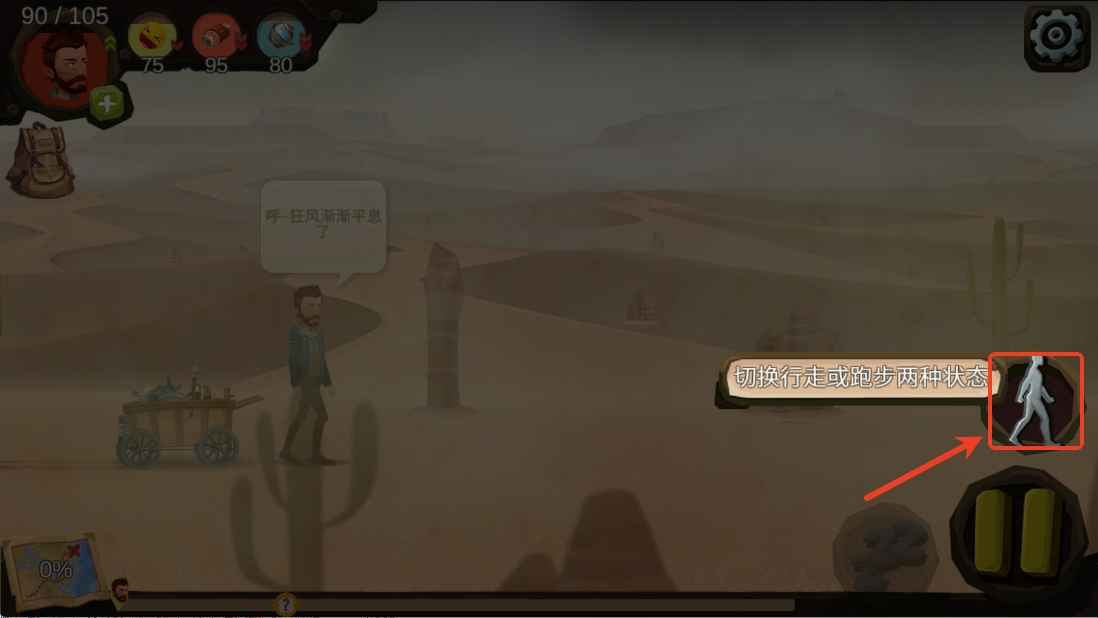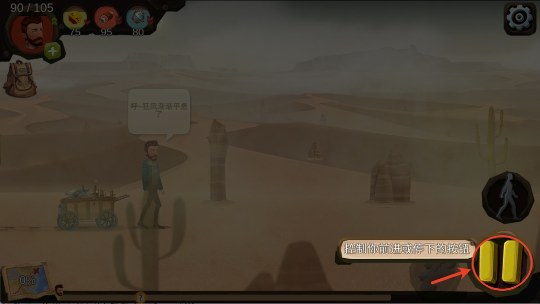 4、游戏内右下角有着两个按键,黄色的是前进或停下按键,白色的是切换行走或奔跑按键。