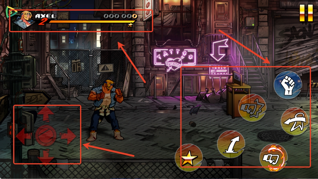 5、进入游戏内后左下角是方向键,右下角是攻击键和技能键,上方是人物血条。